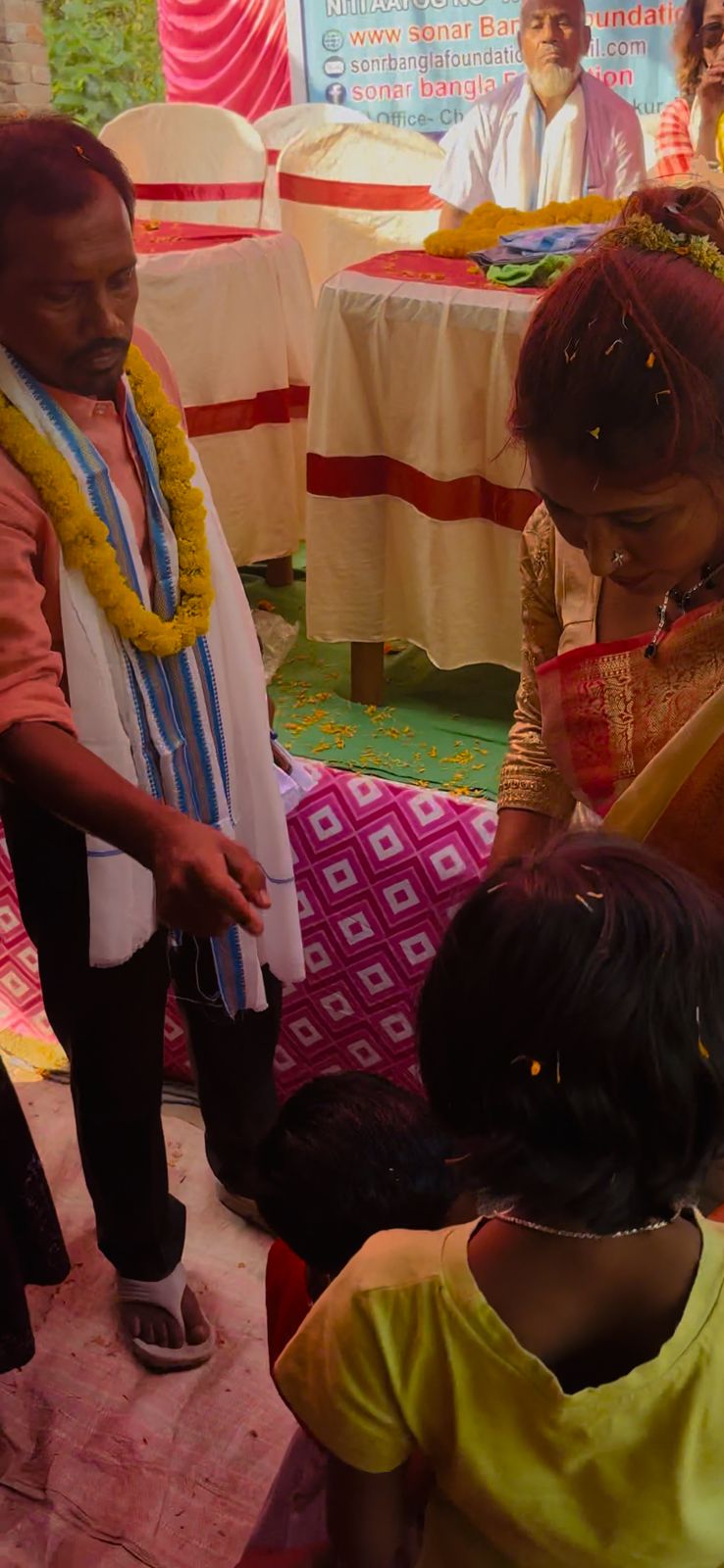 Sonar Bangla Foundation successfully organized a grand social event at Ashoknagar Pumlian Adivasi Para, led by the Foundation’s Chairperson Shabana Parvin and Coordinator Nawab Hossain. The program included the distribution of sarees, dhotis, children’s clothes, food items, as well as a health camp, free medicines, and sanitary napkins for women.